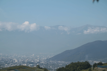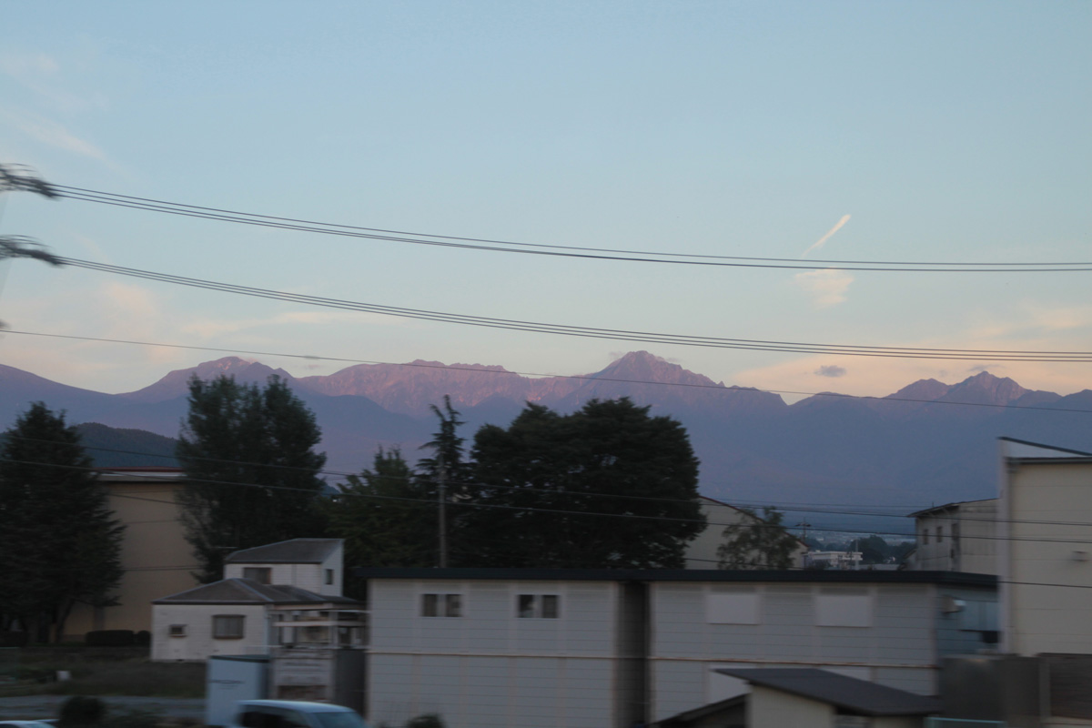 中央線から見下ろす甲府盆地は良い眺めです.こうして山と街並みを見ると,山がいかにでかいか実感できますねぇ.
