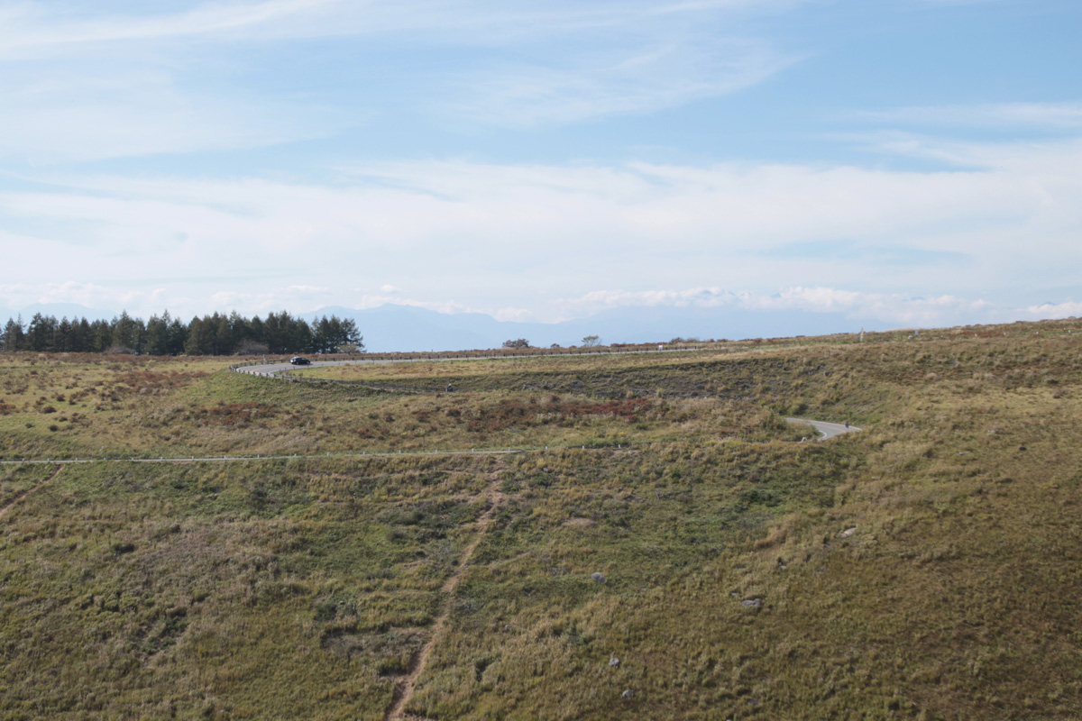 走ってきた道を振り返る.ビーナスラインはドライブしていても気持ちいいですよ.