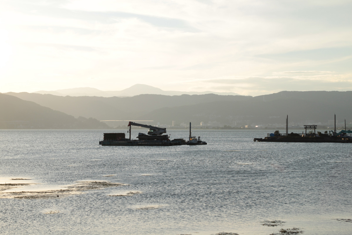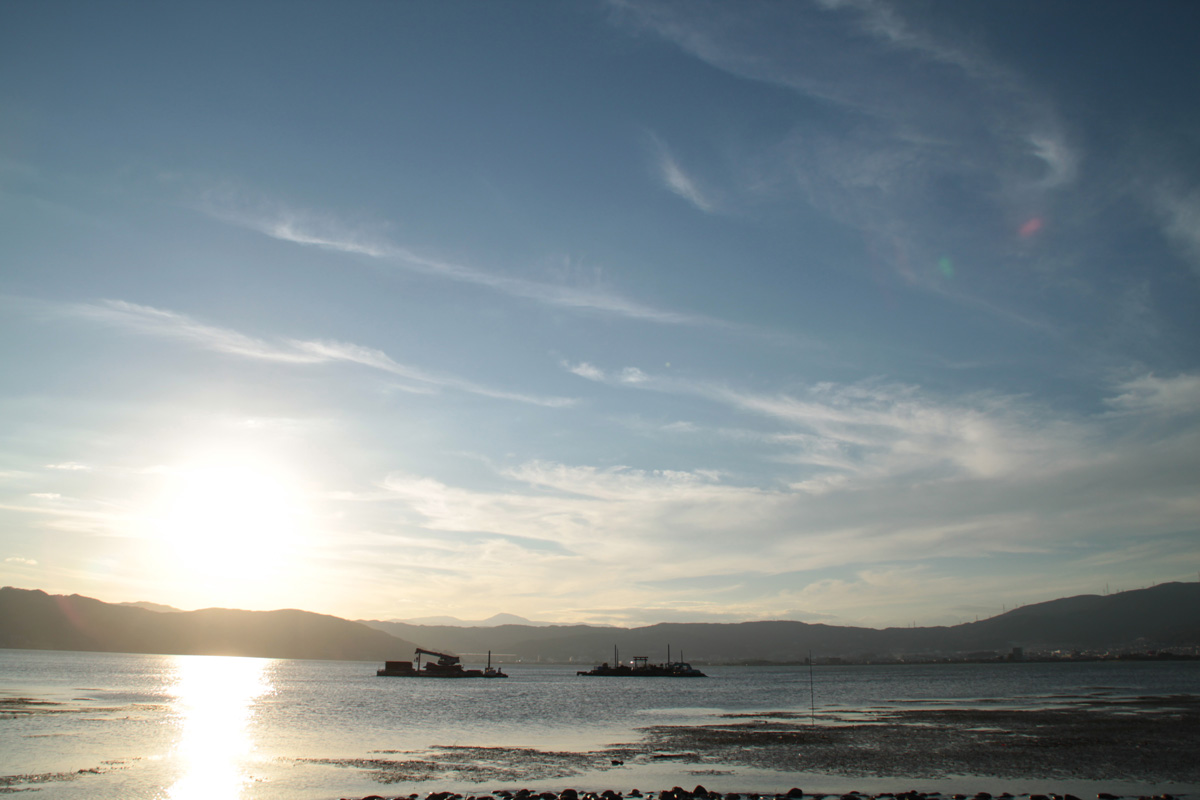 諏訪湖の夕日.今回の旅行は「諏訪湖畔で深呼吸プロジェクト」というテーマで行ったので,ここでは思い切り深呼吸.ちなみに,夕日が映る水面の反射特性については平林さんの解説が面白いです.天空光やら水面形状やらライトブルームやらを扱っていると,いずれはこういう現象もきちんとシミュレートできるようにしたいなぁなんてことも思いました.