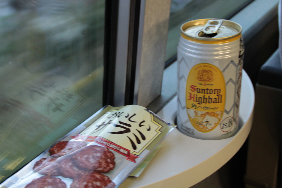 帰り道は八ヶ岳連峰を眺めながら一杯.列車旅はこれができるのが良いのよね.